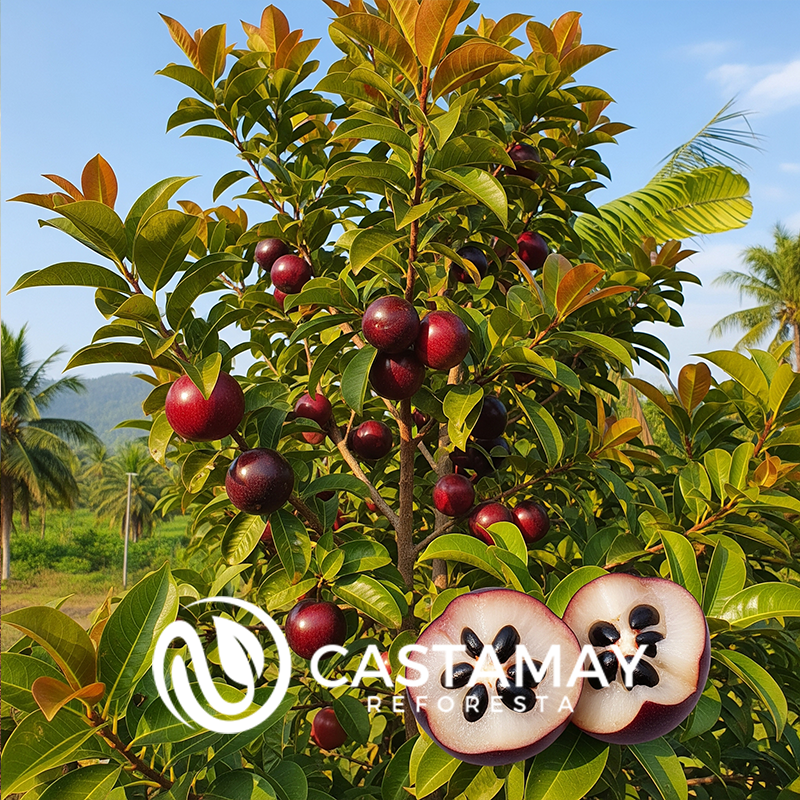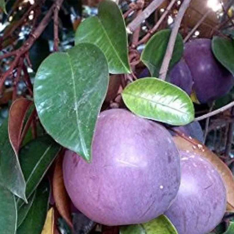 En resumen, el caimito morado es un árbol majestuoso con un fruto delicioso y visualmente atractivo, caracterizado por su piel púrpura, su pulpa dulce con forma de estrella al cortarlo, y sus hojas con envés dorado.