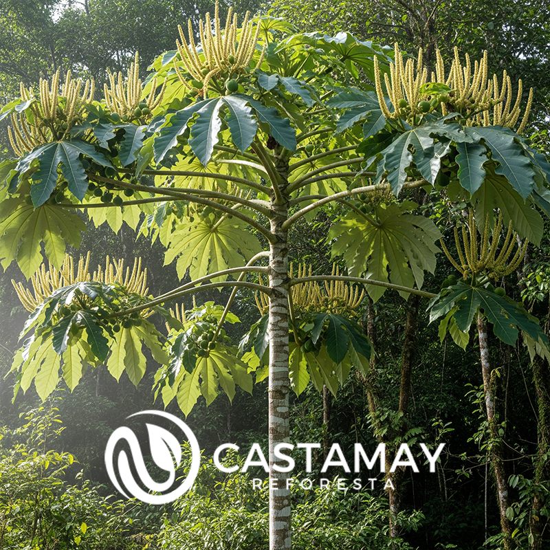 El Guarumbo (Cecropia obtusifolia Bertol), también conocido como "trompetillo", "palo de hormigas" o "yarumo" en otras regiones, es un árbol muy común y distintivo de los ecosistemas tropicales de México y Centroamérica. Es una especie pionera, lo que significa que es de las primeras en colonizar claros de bosque y áreas perturbadas.