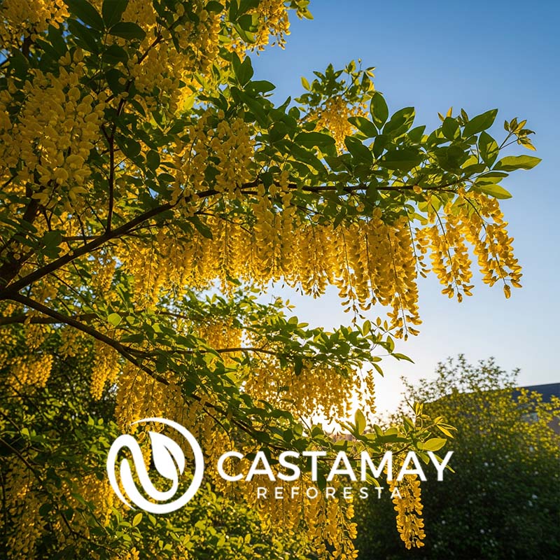 La "Lluvia de Oro" (Laburnum anagyroides) es un árbol ornamental conocido por su espectacular floración, que forma cascadas de flores amarillas. Es originario de las montañas del centro y sur de Europa.