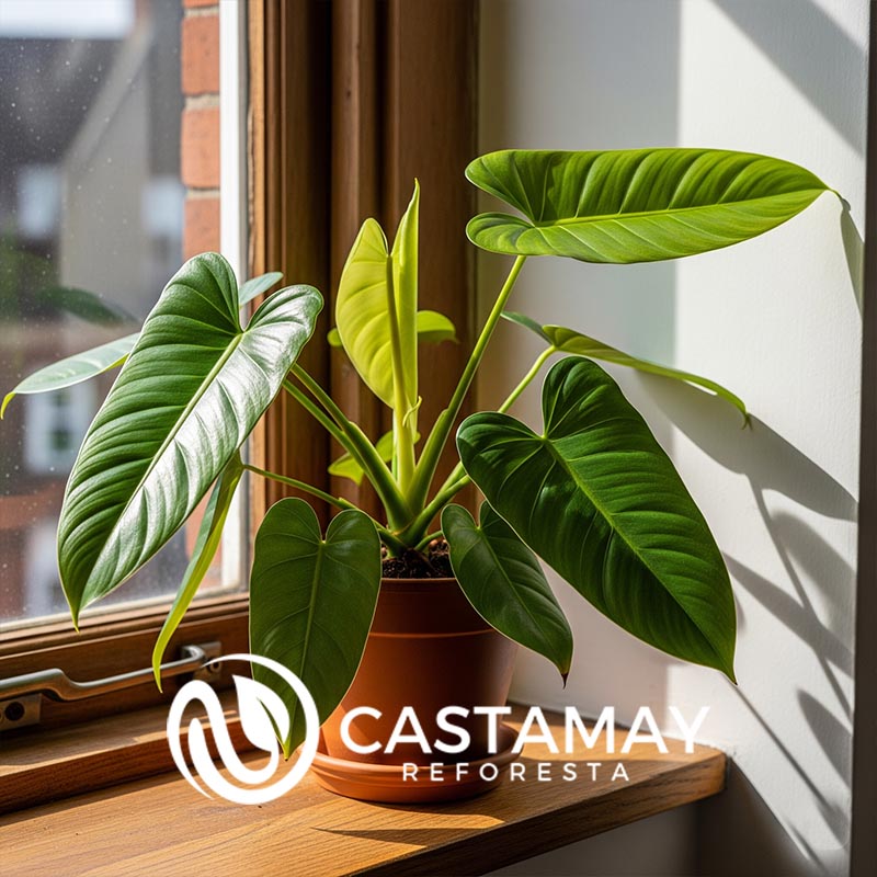 Perteneciente a la familia Araceae, este filodendro es una planta trepadora cuyo rasgo más distintivo es el espectacular contraste de color en sus hojas. Mientras que la parte superior (el haz) es de un verde intenso y brillante, la parte inferior (el envés) esconde un rico y profundo color borgoña o rojizo. Este efecto de doble cara le da a la planta una profundidad y un interés visual únicos, especialmente cuando la luz se filtra a través de sus hojas o cuando se le ve desde diferentes ángulos.