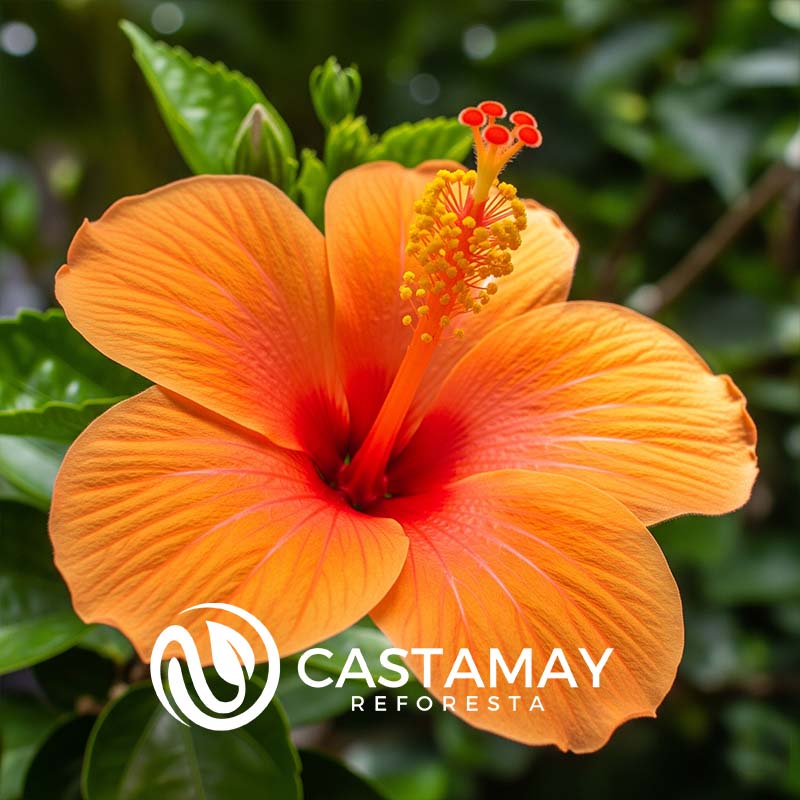 El hibisco naranja es otra variedad muy llamativa del género Hibiscus, apreciado por sus colores cálidos y vibrantes. Al igual que el hibisco rosa, la especie más común es Hibiscus rosa-sinensis, aunque existen muchos híbridos con flores naranjas.