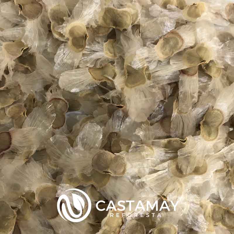 - Forma y Alas: Son semillas aladas y delgadas, de forma obovada y con una compresión dorsiventral. Sus alas son hialino-membranáceas (transparentes y delgadas), lo que las hace muy ligeras y facilita su dispersión por el viento (anemocoria).